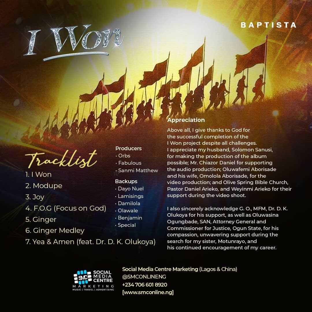 Baptista shares that when she stopped striving, God intervened, stirring the heart of Oluwafemi Aborisade to shoot the I Won music video reaffirming her conviction that God never abandoned her journey.