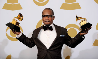 Singer Kirk Franklin holds his awards for “Best Gospel Album” and Best Gospel Song “Hello Fear” at the 54th annual Grammy awards in Los Angeles, California, February 12, 2012.
