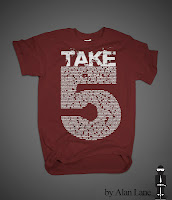 The ‘take five’ tee shirts are branded by the prestigious ‘Alan Lane’ designer/cloth line and powered by Christed Records.