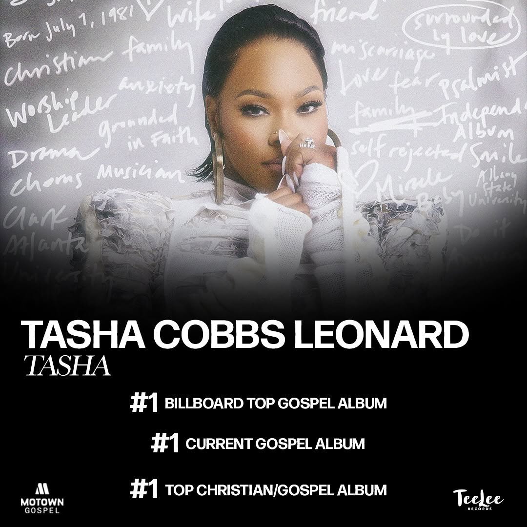 Her newly released album, simply titled “TASHA”, has made a stunning debut, landing at: Billboard Top 1 Gospel Album, #1 Current Gospel Album, #1 Top Christian/Gospel Album