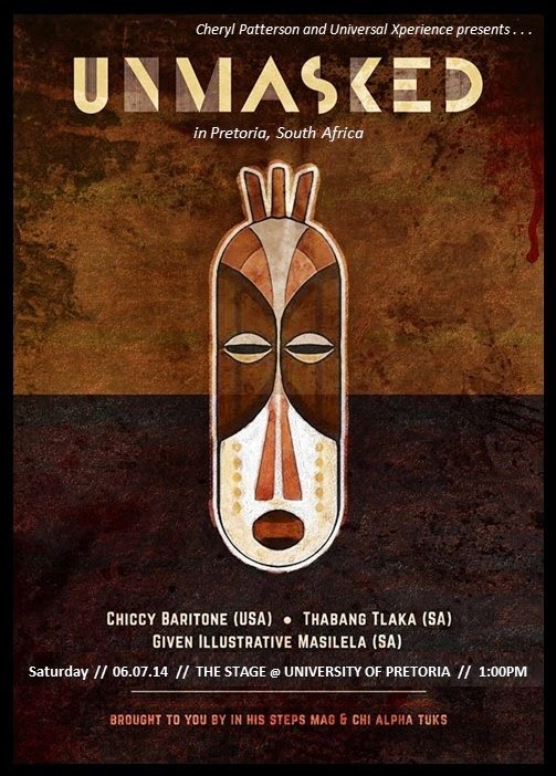 In an exciting and inspiring gathering of poets and spoken word artists, Cheryl Patterson and Universal Xperience in collaboration with In His Steps Magazine and Chi Alpha Tuks presents UNMASKED!